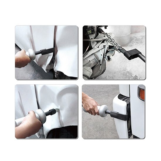 Features: Commonly used tool set to use on body panel and vehicle chassis. Designed to work on body repair, chassis, bumper ends, fender edge, door, door edge or other unique pulling applications. Heavy duty slide hammer action with 10 lbs hammer and various attachments; Slide Shaft, Slide Hammer, Washer, Slide Shaft Handle, Flat Pipe, Large Hook Type Plate, Small Hook Type Plate, 90 Angle Thick Hook Plate, 90 Angle Thin Hook Plate, Two Hole Pipe, Flat Plate, Chain & Hook, Screw Puller to suit different pulling jobs. |